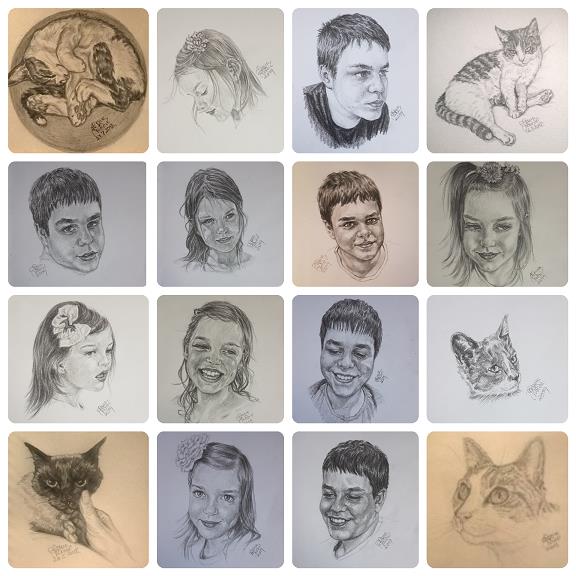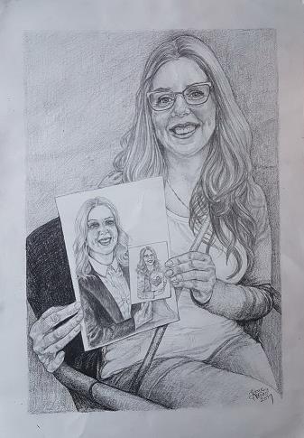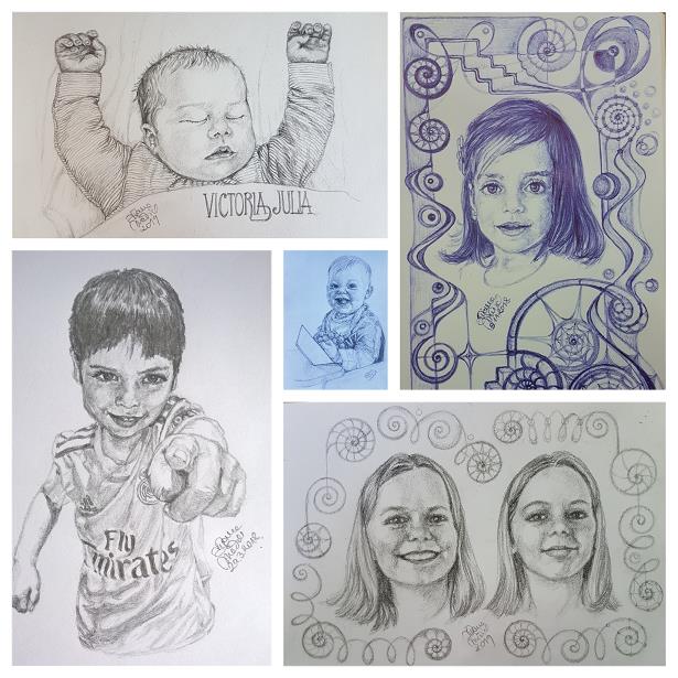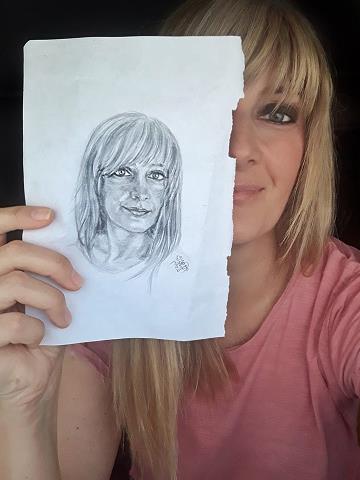 “Kao za inat, nekim danima po troje imaju rođendan, a nekim danima niko, tako da taj plan neće moći da se ispuni u toku jedne godine. Crtanje mi je zaista dalo uvid za to čemu sve te društvene mreže služe – odnosno, čemu bi trebalo da služe. Na Fejsbuku sam više od deceniju i ranije sam smatrala da uglavnom služi samo da se manje iznenađujete na godišnjicama mature. Ali sad sam se, počevši od inicijalne grupe za kurs crtanja, povezala sa ljudima sa kojima zaista dijelim interese i koji mi u crtanju pomažu i inspirišu me na neočekivane načine. Tako da i oni koje nikada neću sresti uživo definitivno zaslužuju portret za rođendan. Takođe, portret za rođendan zaslužuju, i mogu da računaju da će ga dobiti, i oni koji rođendan slave uživo pa me na slavlje pozovu! Kao što mogu da crtam dok prevodim, mogu da crtam i dok razgovaram sa prijateljima – a tek što mogu da crtam dok jedem i pijem! Bilo je portreta i za slavu i za druge svečane prilike. A kad nema svečanih prilika, tu je moja porodica i hiljade fotografija našeg zajedničkog života koje sam snimila i koje i dalje snimam svaki dan.”