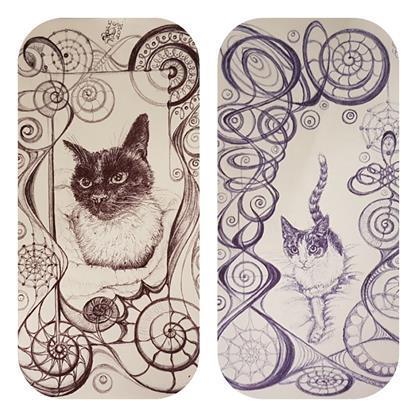 Crteži spiralno opuštenih mačaka, hemijska olovka