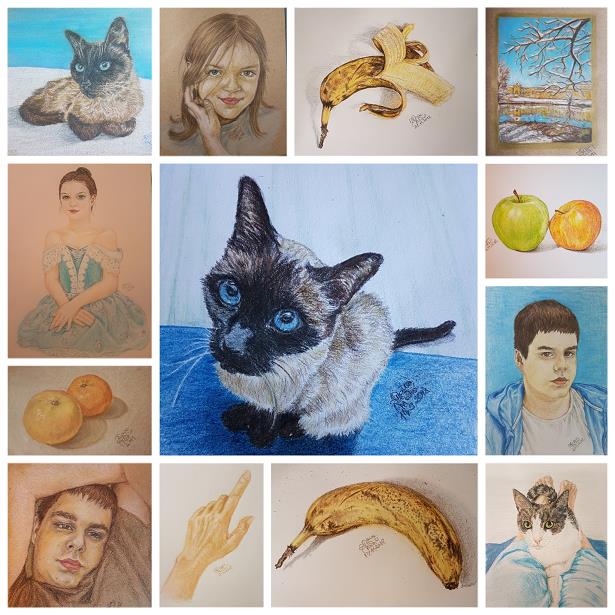 “Od samog početka mi se svidjelo kako ljudi reaguju na portret koji je nastao na osnovu njihove fotografije, a koji dobiju kao poklon iznenađenja. Čak i moji inicijalni pokušaji, koji zaista nisu bili ni previše dobri, ni previše nalik ljudima koje je trebalo da predstavljaju, a svakako ni laskavi, primljeni su sa toliko pozitivne energije i zahvalnosti – imam stvarno sreće što imam takve prijatelje. Volim da činim ljude sretnima i, nakon stotina portreta, ne mogu se sjetiti nijedne negativne reakcije. Zato i volim da fotografišem svoje modele u trenucima kada im dajem portrete na kojima su oni, i te fotografije su najvažniji dio mog websajta i najbolji dio mog Instagrama. Onda, naravno, i ta fotografija može da bude osnova za naredni portret, i tako sam napravila i seriju portreta u portretima. U jednom slučaju sam došla do petog nivoa rekurzije, što je nešto što veoma zabavlja onaj matematički dio mog mozga. To je tema mog drugog članka Rekurzivni portreti moje prijateljice.”
